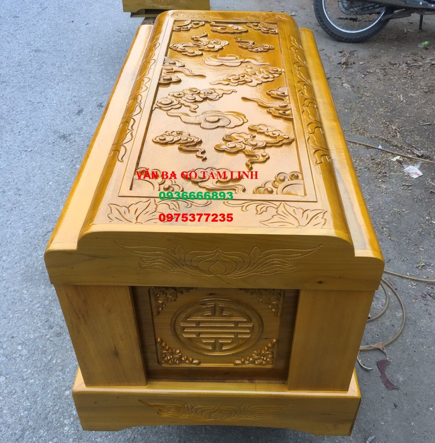 Bên cạnh chất liệu gỗ Vàng Tâm bền đẹp, kiểu dáng trạm rồng cũng mang lại tính thẩm mỹ cao, thể hiện sự kính trọng với người đã khuất. Đây không chỉ là một sản phẩm vật chất mà còn chứa đầy ý nghĩa tâm linh.