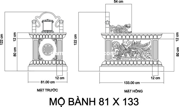Khi xây mộ theo phong thủy, việc chọn kích thước là rất quan trọng để đảm bảo an yên cho phần mộ. Đối với phần mộ nổi, kích thước phủ bì lý tưởng là 81 x 127 cm hoặc 89 x 133 cm. Những kích thước này không chỉ được tính toán dựa trên diện tích mà còn cần tuân theo nguyên tắc âm dương, tương sinh tương khắc.