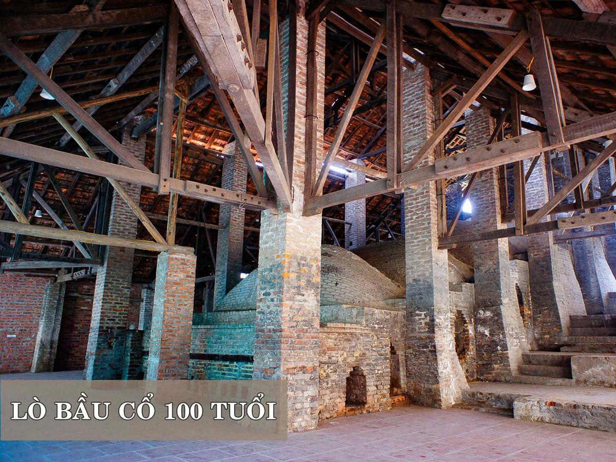 Lò Bầu được xây dựng với cấu trúc độc đáo, thường có từ 5 đến 10 bầu, giúp nung gốm bằng củi, mang lại chất lượng sản phẩm đặc trưng. Hiện nay, chỉ còn duy nhất một chiếc Lò Bầu tồn tại, với tuổi đời hơn 100 năm. Lò có diện tích khoảng 1030m² và chiều dài lên tới 15m, vẫn đứng sừng sững giữa không gian cổ kính của làng gốm.