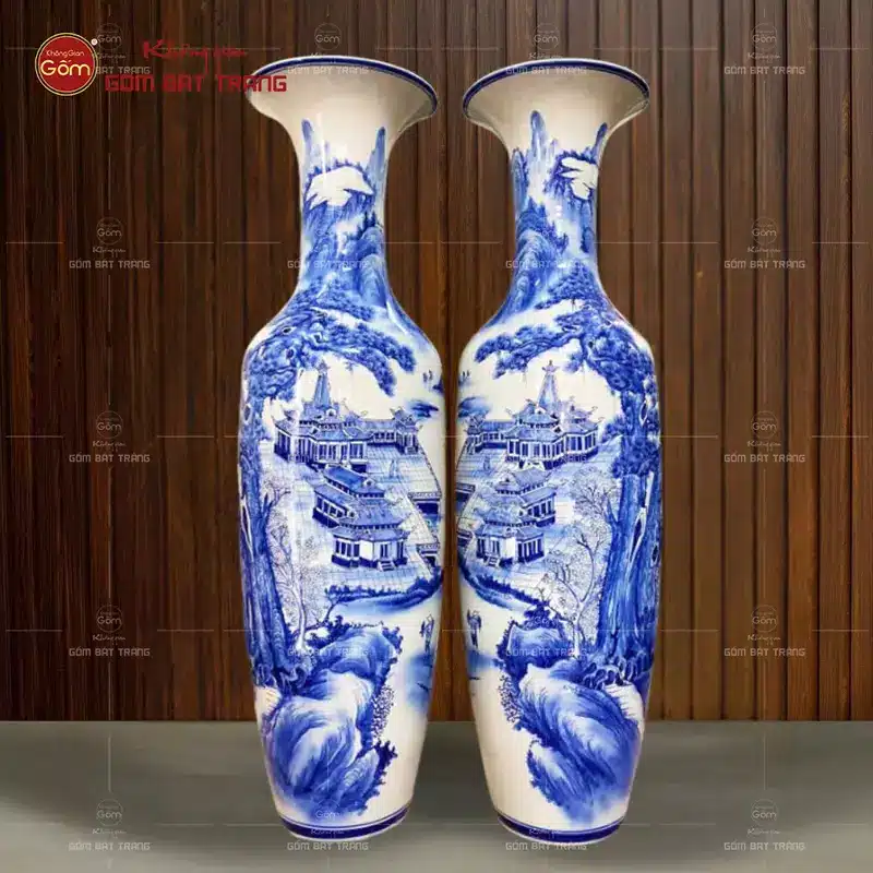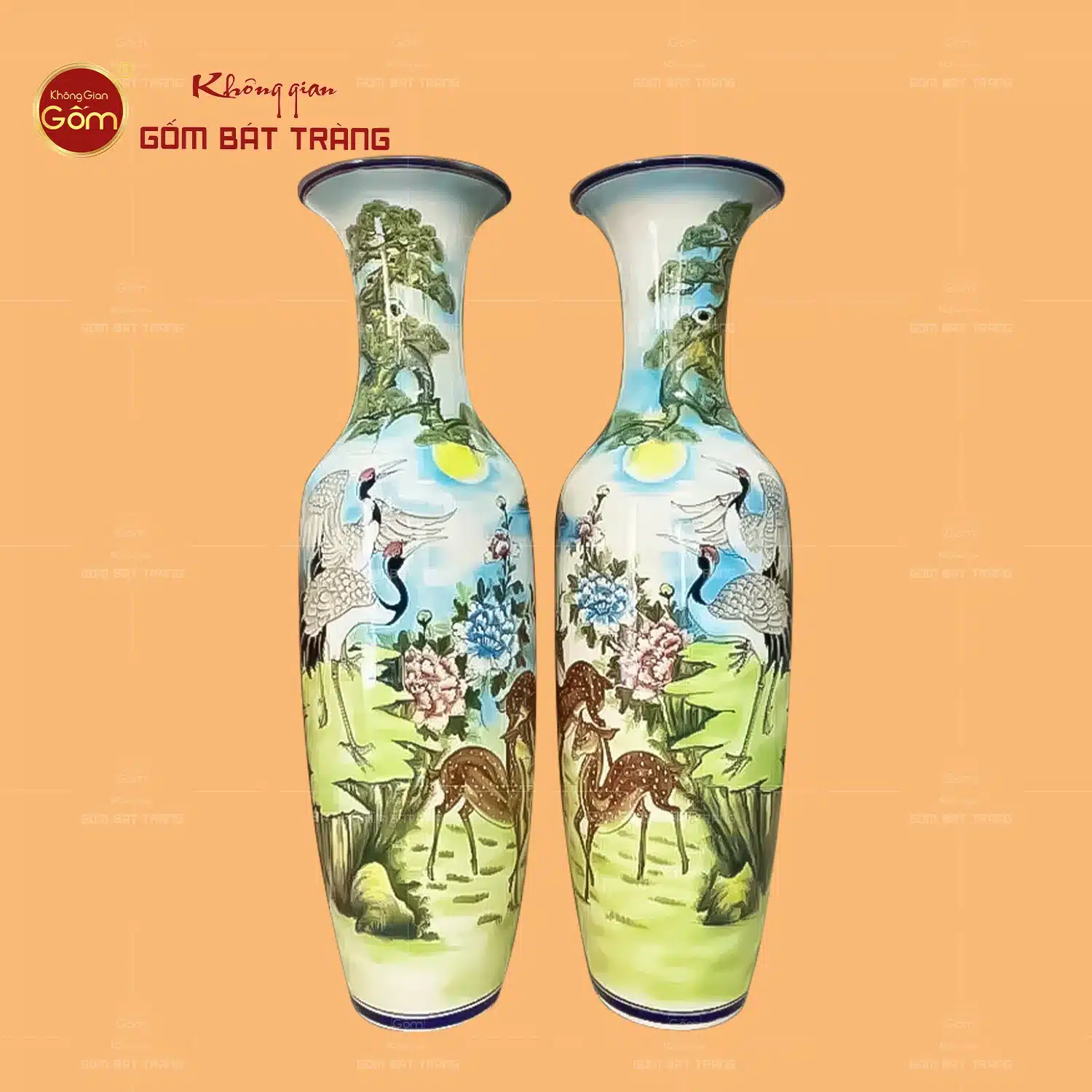 Gốm sứ Bát Tràng nổi tiếng với sự tỉ mỉ trong từng chi tiết. Những chiếc lộc bình được chế tác không chỉ đơn giản là vật trang trí, mà còn là biểu tượng của sự hút tài lộc, phúc khí. Những mẫu lộc bình có chiều cao từ 1m2 đến 1m6, vừa vặn cho nhiều không gian khác nhau, từ phòng khách đến văn phòng làm việc.