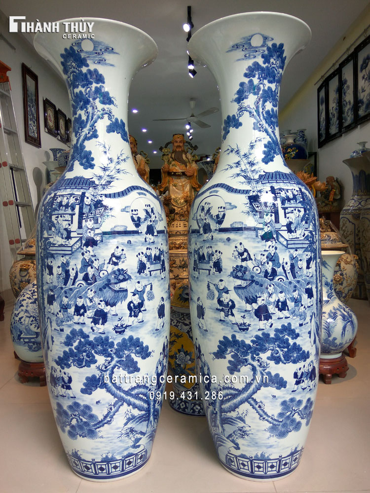 Với nhiều kích thước khác nhau như 1,35 mét, 1,55 mét hay 1,75 mét, lộc bình sứ Bát Tràng không chỉ mang đến sự tinh tế cho không gian sống mà còn được coi là vật phẩm phong thủy, giúp gia chủ phát tài phát lộc. Những chiếc lộc bình này thường được trưng bày trong các gia đình hoặc đình chùa, mang lại sự may mắn và sung túc cho gia đình.