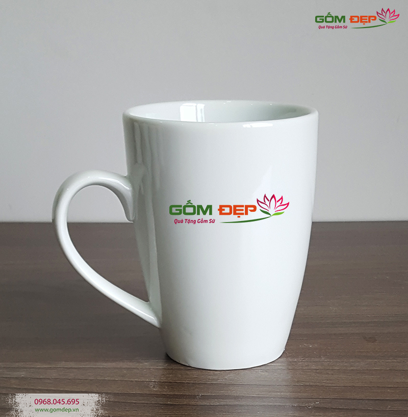 Được sản xuất từ gốm sứ Bát Tràng chất lượng cao, cốc sứ này được nung ở nhiệt độ từ 1200 đến 1300 độ C, đảm bảo độ bền và an toàn cho sức khỏe. Bề mặt cốc men trắng trơn láng, không bám trà hay cà phê, dễ dàng vệ sinh. Điều đặc biệt là việc in logo trên cốc sứ không chỉ tạo nên sự độc đáo mà còn giúp doanh nghiệp khẳng định thương hiệu hiệu quả.