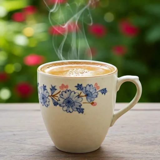 Ly cà phê nóng thơm lừng trên bàn gỗ ấm áp