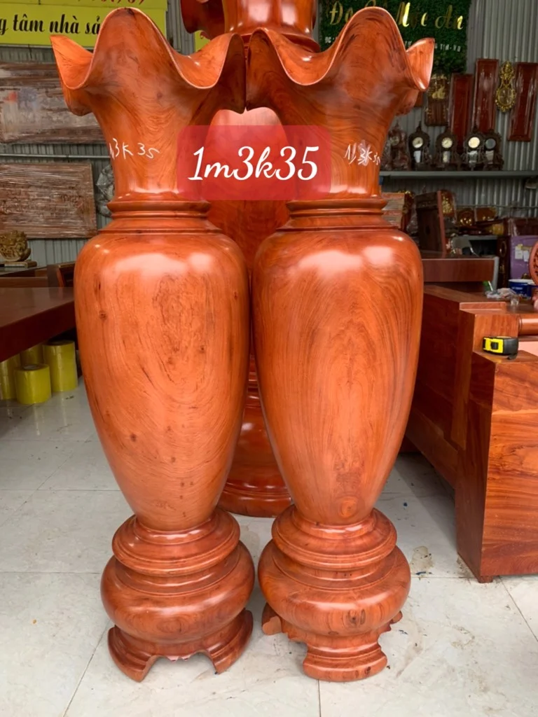 Mỗi sản phẩm lộc bình được chế tác từ những loại gỗ quý như gỗ Cẩm Lai hay gỗ Hương, mang đến vẻ đẹp tự nhiên với những thớ gỗ rõ nét. Đặc biệt, với kích thước lớn, lộc bình không chỉ giúp chiêu tài mà còn là nét chấm phá ấn tượng, làm nổi bật không gian sống của gia chủ.