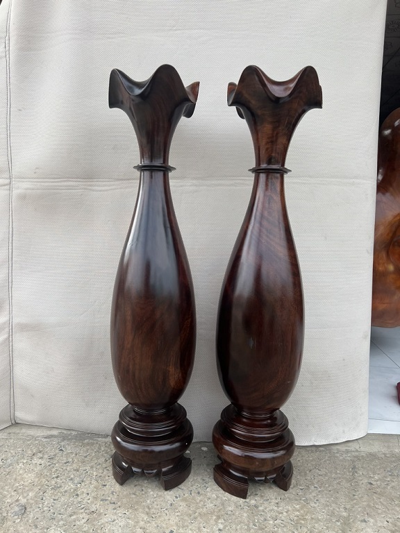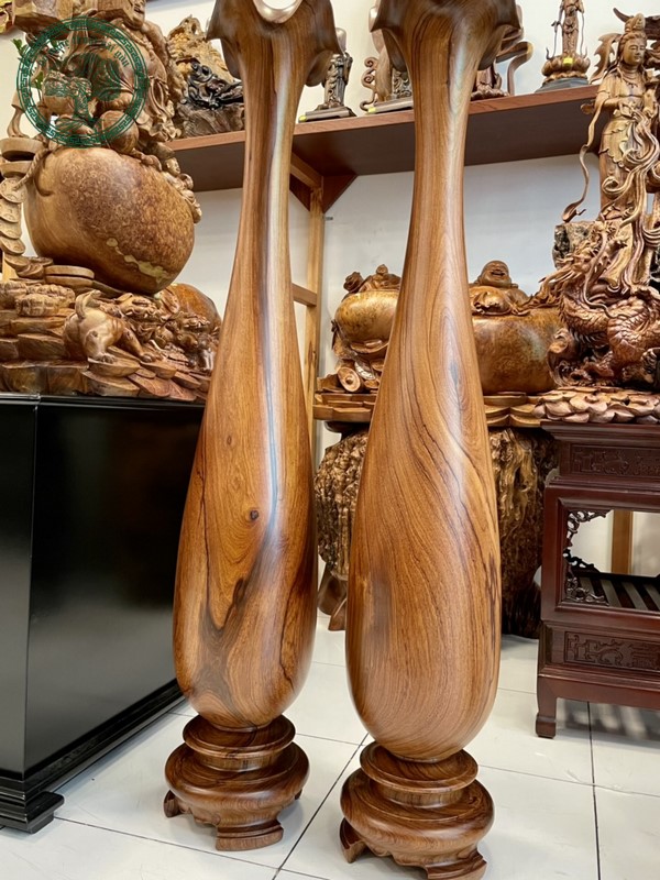Mẫu lộc bình đẹp nhất hiện nay luôn thu hút ánh nhìn bởi sự tinh tế trong từng chi tiết. Đặc biệt, những chiếc lộc bình gỗ thủy tùng với chiều cao 1,2m và 1,79m, đường kính 33cm và 52cm, sở hữu vân gỗ cực đẹp, mang lại vẻ sang trọng cho không gian bày trí. Chế tác từ các loại gỗ quý như gỗ Cẩm Lai, gỗ Gõ Đỏ hay gỗ Hương, mỗi chiếc lộc bình đều thể hiện vẻ đẹp tự nhiên với những đường vân sắc sảo, nổi bật.