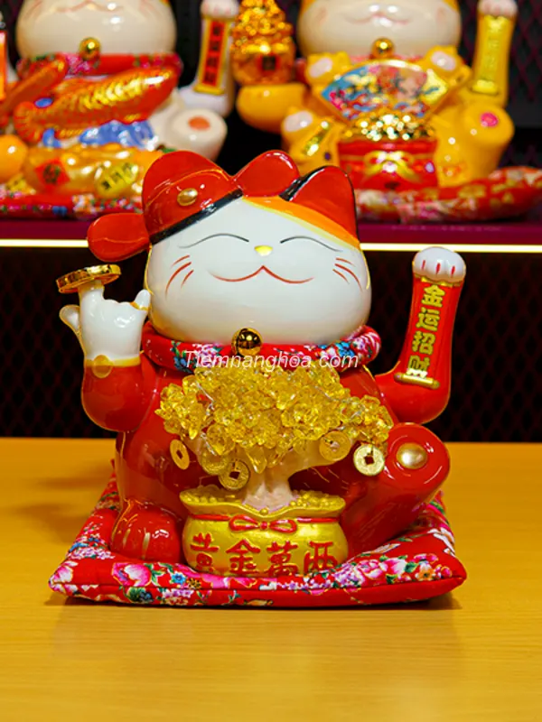 Mèo Thần Tài Vẫy Tay Màu Đỏ không chỉ là vật phẩm phong thủy đẹp mắt mà còn mang ý nghĩa sâu sắc trong văn hóa kinh doanh. Với màu đỏ rực rỡ, chú mèo này tượng trưng cho tài lộc và thịnh vượng. Khi đặt trong nhà, cửa hàng hay văn phòng, Mèo Thần Tài có khả năng thu hút may mắn, giúp gia chủ gặp nhiều thuận lợi trên con đường sự nghiệp.