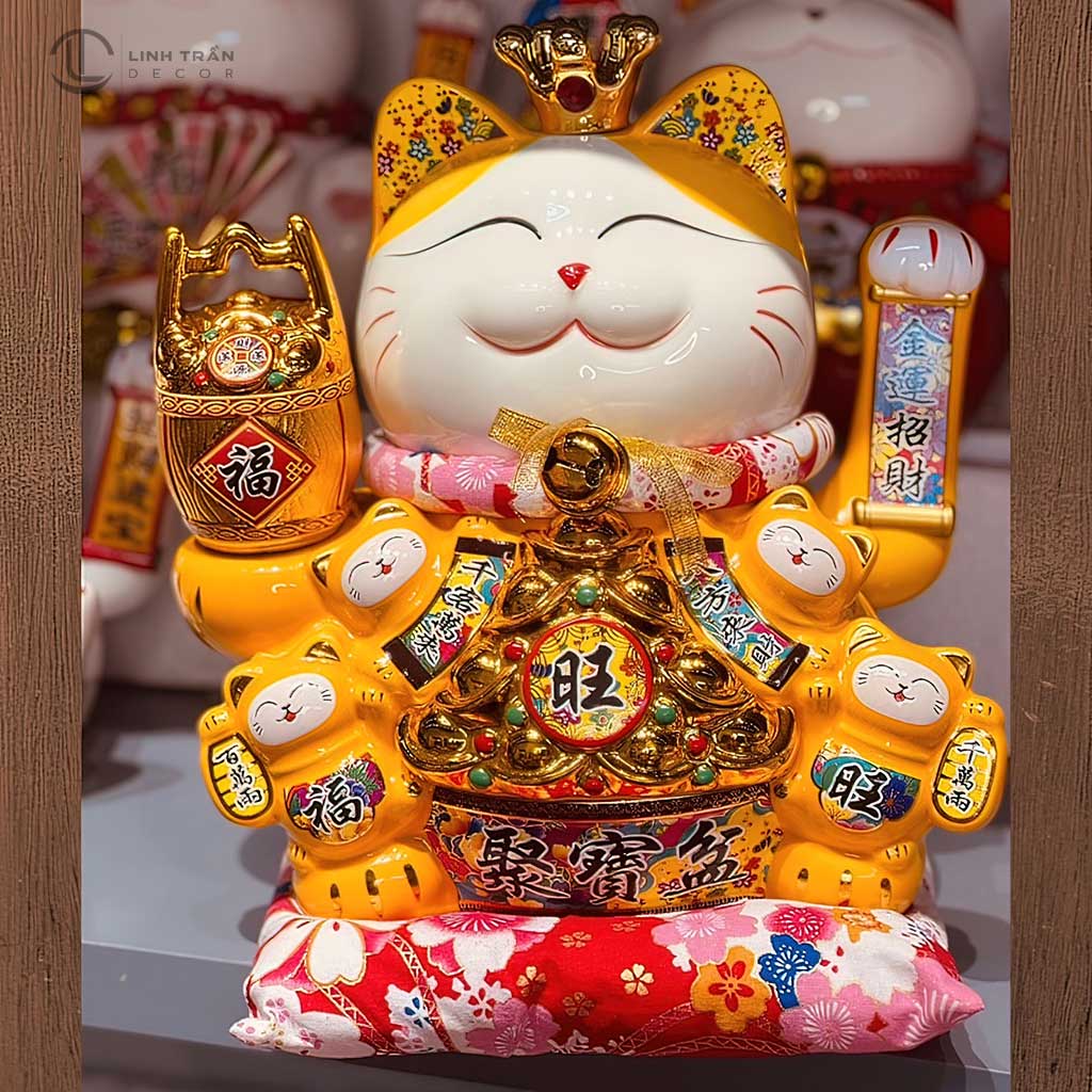 Ngoài ra, có rất nhiều mẫu mã và kích thước khác nhau, phù hợp với từng không gian sống. Có thể nói, Mèo Thần Tài Vẫy Tay màu vàng không chỉ là một món đồ trang trí độc đáo mà còn là người bạn đồng hành đáng tin cậy, mang lại những điều tốt lành cho các gia đình.