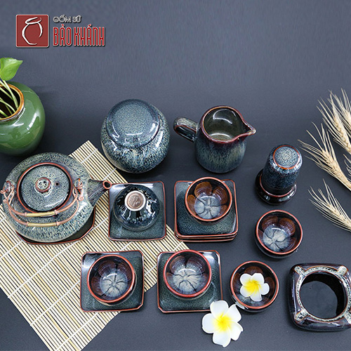 Ngoài ra, bộ sản phẩm còn bao gồm nhiều món đồ như ấm trà, chén, đĩa lót và lọ đựng trà, phù hợp cho nhiều mục đích sử dụng khác nhau. Nếu bạn đang tìm kiếm một sản phẩm gốm truyền thống nhưng lại mang tính hiện đại, men hỏa biến chính là lựa chọn đáng giá để thêm phần sang trọng cho không gian bếp của mình.
