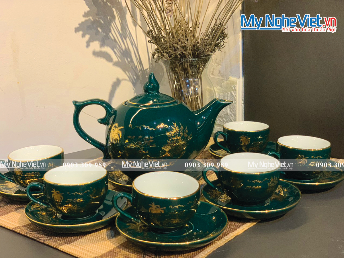 Bình trà Bát Tràng cao cấp không chỉ là một sản phẩm bằng gốm sứ mà còn mang trong mình sự tinh túy của nghề thủ công truyền thống Việt Nam. Được sản xuất tại làng gốm Bát Tràng với men xanh ngọc sáng bóng, mỗi bộ ấm chén đều là một tác phẩm nghệ thuật độc đáo, đem lại trải nghiệm uống trà tuyệt vời.