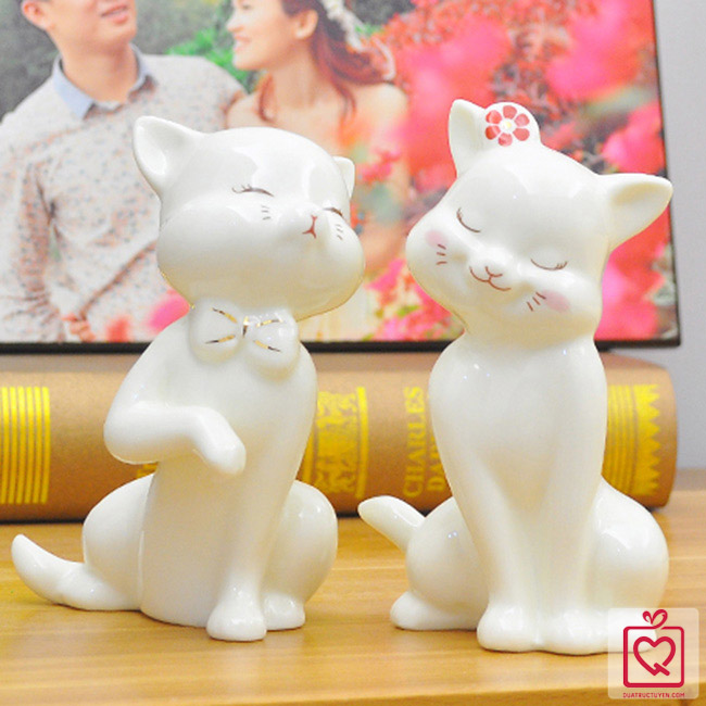 Tượng mèo làm từ gốm sứ cao cấp không chỉ đẹp mà còn bền bỉ. Những mẫu mèo với màu trắng bóng, mắt xanh dương, má ửng hồng và khăn quàng cổ tím sẽ mang lại sự tươi sáng cho không gian của bạn. Đặc biệt, với bộ quà tặng như Mèo Vạn Phúc hay Mèo Thần Tài, bạn còn gửi gắm những thông điệp về sự may mắn, công danh và tài lộc cho người nhận.