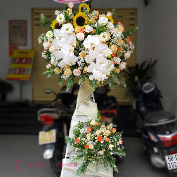 Ngoài mèo thần tài, tỳ hưu tài lộc cũng là lựa chọn tuyệt vời, tượng trưng cho sự phát đạt và an khang. Một lẵng hoa tươi thắm cũng là món quà thể hiện lòng chúc phúc cho sự khởi đầu rực rỡ của quán cafe mới. Kệ hoa khai trương không chỉ làm đẹp cho không gian, mà còn mang lại cảm giác ấm cúng cho khách hàng.