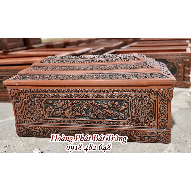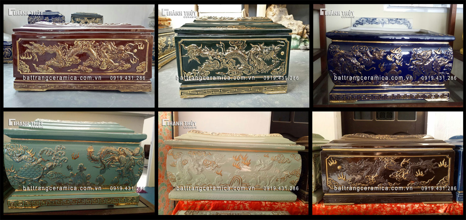 Màu sắc của quách tiểu Bát Tràng cũng rất phong phú, từ xanh ngọc đến đỏ đun, nâu vàng, cho phép gia đình lựa chọn tùy theo sở thích và ý nghĩa. Sản phẩm không chỉ đẹp mà còn có độ bền cao, phục vụ như một nơi tôn nghiêm để ghi nhớ và tri ân tổ tiên, cha ông đã khuất.
