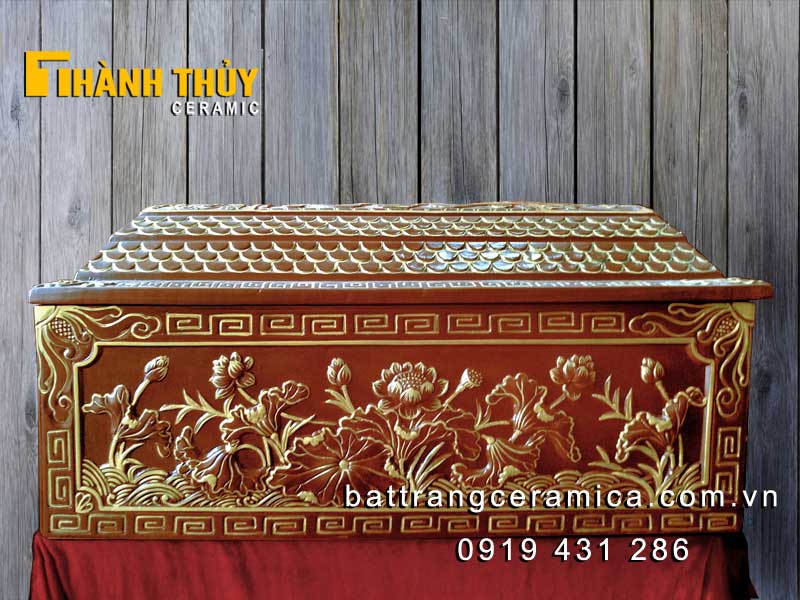 Mỗi chiếc quách tiểu tại đây đều được làm từ gốm sứ cao cấp, có đường nét tinh tế và màu sắc bắt mắt. Chẳng hạn như mẫu tiểu quách hoa sen sang trọng, với kích thước 75cm x 38cm x 38cm, rất thích hợp cho các bậc tiền bối. Bạn có thể đặt hàng qua số điện thoại 0918 48 26 48 hoặc email hoangphatbattrang@gmail.com để được tư vấn chi tiết hơn.
