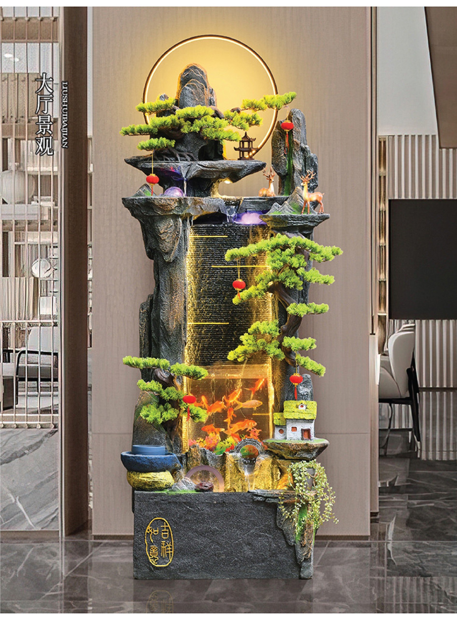 Các sản phẩm tiểu cảnh này được chế tác từ nhiều chất liệu khác nhau, như xi măng, cát và đá, hay gốm sứ cao cấp, mang lại sự bền bỉ và tính thẩm mỹ cao. Đặc biệt, thác nước phong thủy làm từ nhựa composite kết hợp bột đá sa thạch rất nhẹ và dễ sử dụng, phù hợp cho mọi không gian sống.