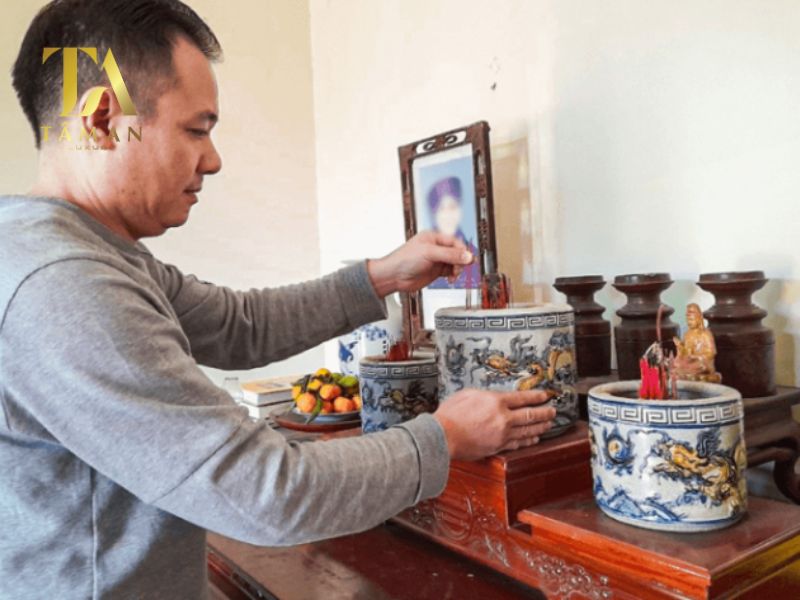 Khi vệ sinh bát hương, nếu tro đầy, chỉ nên xúc từng thìa và đổ ra ngoài, không nên cầm nắm cả nắm chân hương. Cuối cùng, hãy sắp xếp lại đồ thờ ngay ngắn, để mọi thứ trở về vị trí ban đầu, thể hiện tấm lòng thành kính với tổ tiên.