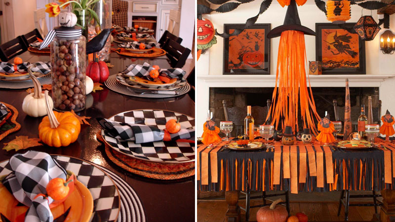 Khi tổ chức một bữa tiệc Halloween, trang trí bàn tiệc là một phần không thể thiếu để tạo không khí rùng rợn mà vẫn đầy phong cách. Những ý tưởng đơn giản như sử dụng khăn trải bàn màu cam và đen, cùng với bộ chén dĩa có họa tiết đặc trưng của lễ hội sẽ làm nổi bật chủ đề. Một mẹo nhỏ là hãy thêm vào những lọ hoa khô và lá giả màu đen để tạo cảm giác bí ẩn hơn.