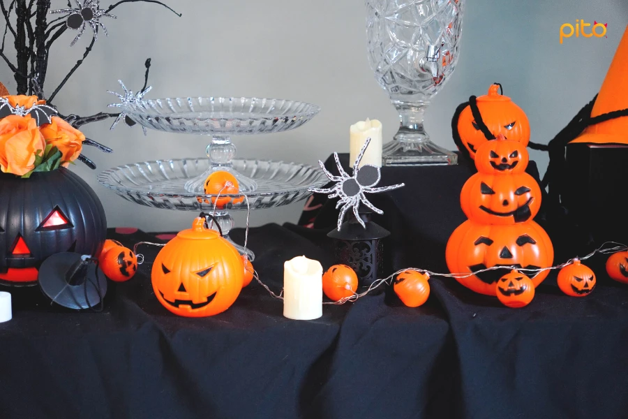Cuối cùng, bạn cũng có thể thêm những món đồ trang trí sinh động như bóng bay hình ma hay nhện nhựa, chắc chắn rằng bàn tiệc của bạn sẽ trở nên độc đáo và ấn tượng, khiến mọi người thích thú và hòa mình vào không khí Halloween.