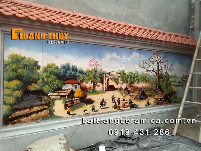 Tranh gốm Bát Tràng ốp tường vẽ cảnh làng quê