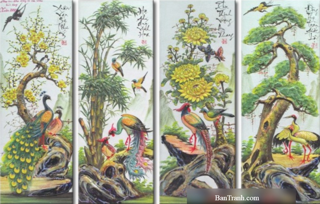 Tranh Tứ Quý Tùng Cúc Trúc Mai Phong Thủy