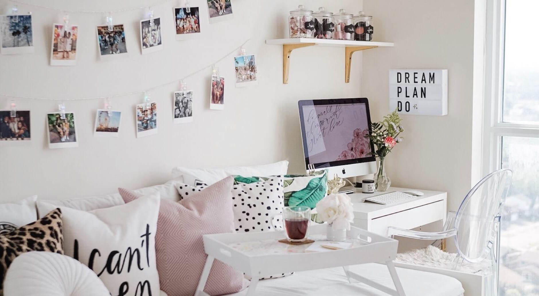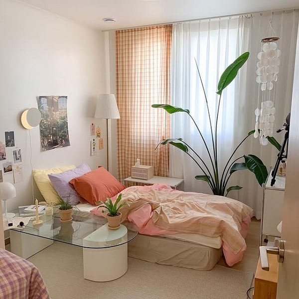 Khi trang trí phòng ngủ nhỏ, hãy lưu ý đến diện tích không gian. Đặt quá nhiều nội thất sẽ khiến phòng trở nên chật chội. Thay vào đó, bạn có thể sử dụng các đồ handmade hay cây xanh để làm đẹp cho phòng mà không cảm thấy bí bách. Những màu sắc nhẹ nhàng, pastel không chỉ trang nhã mà còn mang lại cảm giác thoải mái.