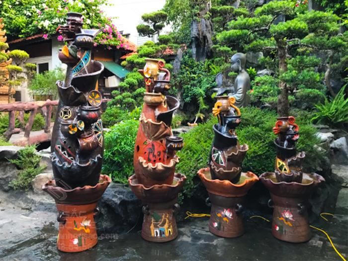 Điểm đặc biệt là các mẫu tượng gốm thường được làm thủ công, mang lại vẻ đẹp mộc mạc và gần gũi. Chúng có độ bền cao, chịu được thời tiết và thêm phần sinh động cho cảnh quan sân vườn. Ngoài tượng gốm, bạn cũng có thể chọn các sản phẩm khác như thác nước, gạch lát hay bình hoa để tạo nên một tiểu cảnh hoàn hảo.