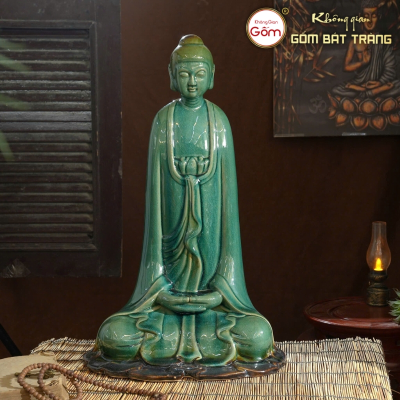 Tượng Phật gốm sứ Bát Tràng mang đậm dấu ấn văn hóa truyền thống của người Việt. Được tạo ra từ gốm sứ cao cấp, các sản phẩm này không chỉ đẹp mắt mà còn thể hiện tâm tư, lòng tôn kính của người nghệ nhân. Những bức tượng thường có màu men trắng ngà, men ngọc hoặc men lam, tạo nên nét thanh thoát và nhẹ nhàng.
