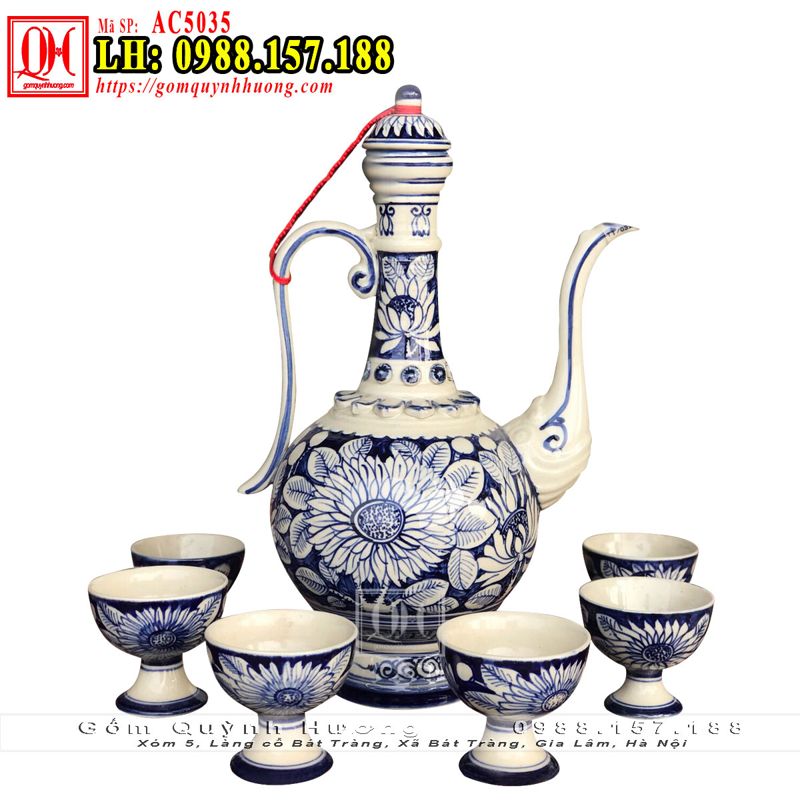 Ấm rượu Bát Tràng gốm sứ tinh xảo thủ công truyền thống