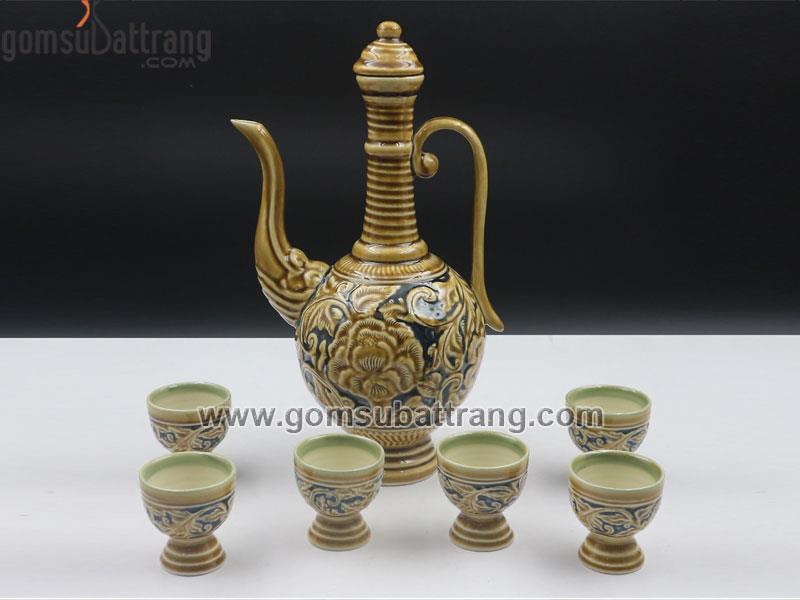 Ấm rượu truyền thống gốm Bát Tràng sang trọng tinh xảo